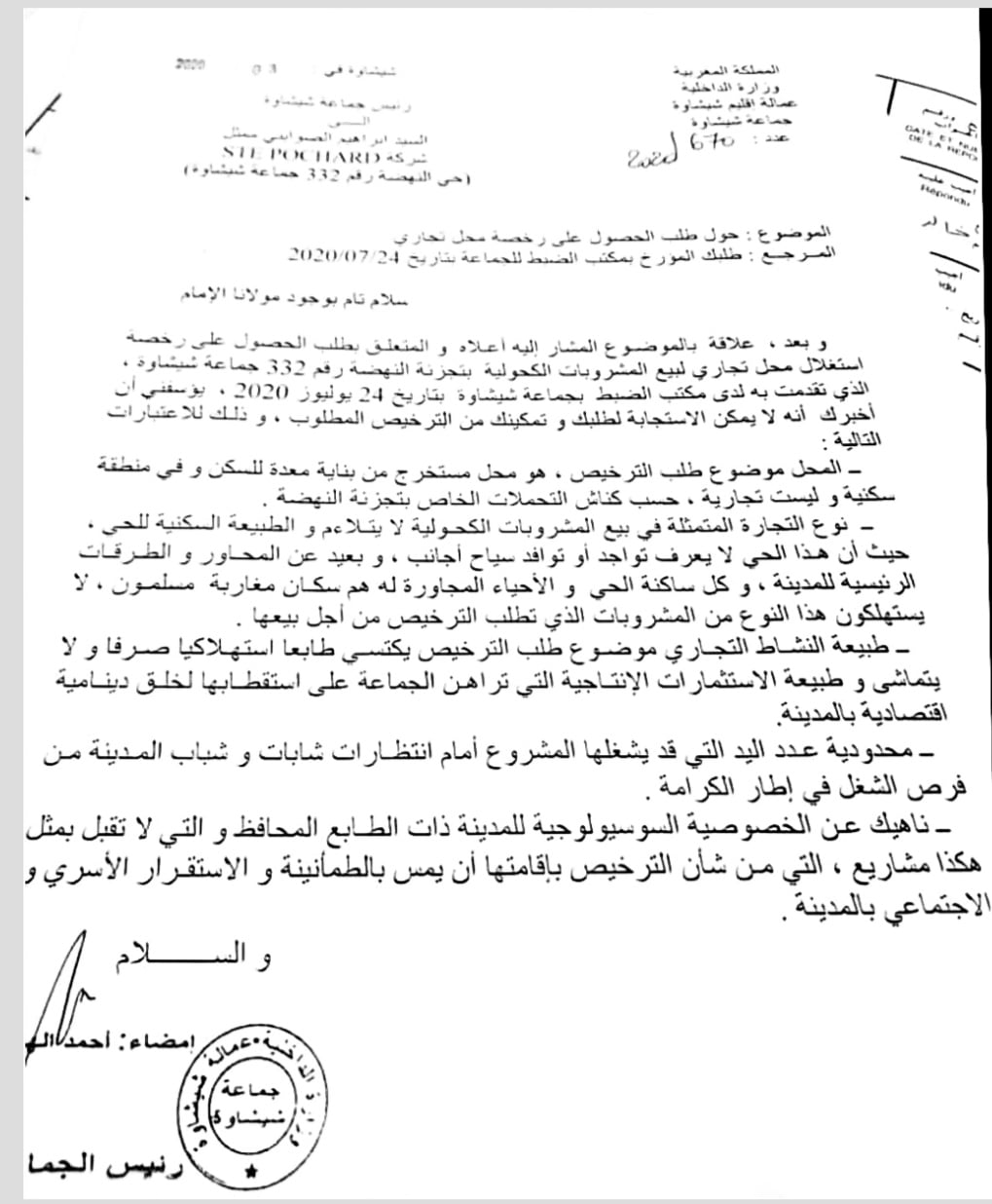 يبدو أن رئيس المجلس الجماعي بشيشاوة مُصِّرٌ على جعل “رفضه” الترخيص لمحل لبيع المشروبات الكحولية بمركز المدينة، إنجازا لمرحلته، خصوصا وأنه بتزامن مع قرب نهاية ولايته واقتراب موسم الإنتخابات.