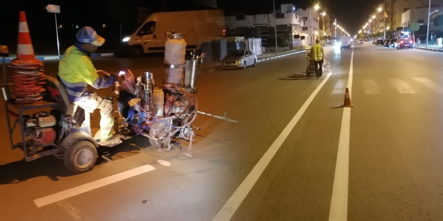 وشملت العملية، التي نفذت بواسطة شركة متخصصة نالت صفقة سند الطلب المخصص لهذا الغرض، صباغة الخطوط المتصلة ومواقف السيارات، بما يساهم في تنظيم حركة المرور وتعزيز شروط السلامة الطرقية.