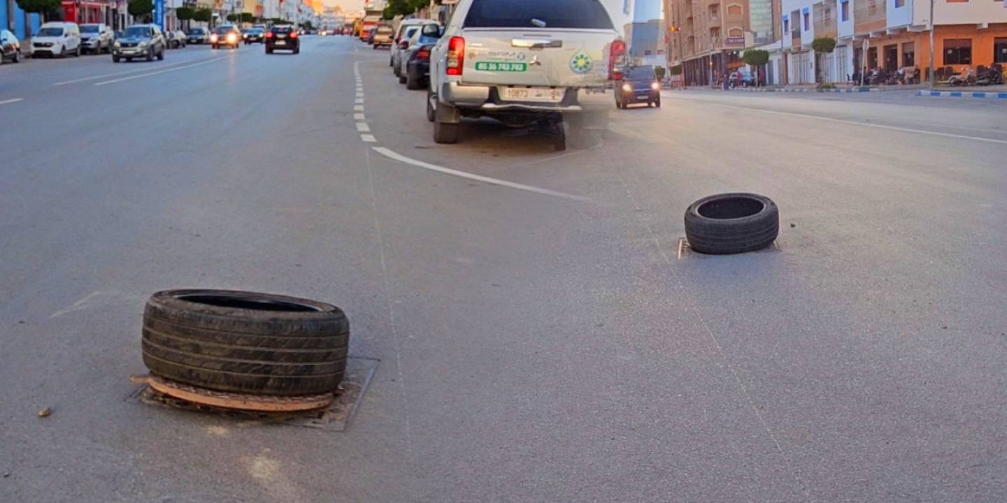 وحسب المعاينات فقد تم تغطية البالوعة بعجلة سيارة في محاولة مؤقتة للتخفيف من الخطر الا ان هذا الحل الجزئي يظل بدائيا ويزيد من خطورة الوضع على مستعملي الطريق خاصة مع كثافة حركة السير في الشارع الرئيسي