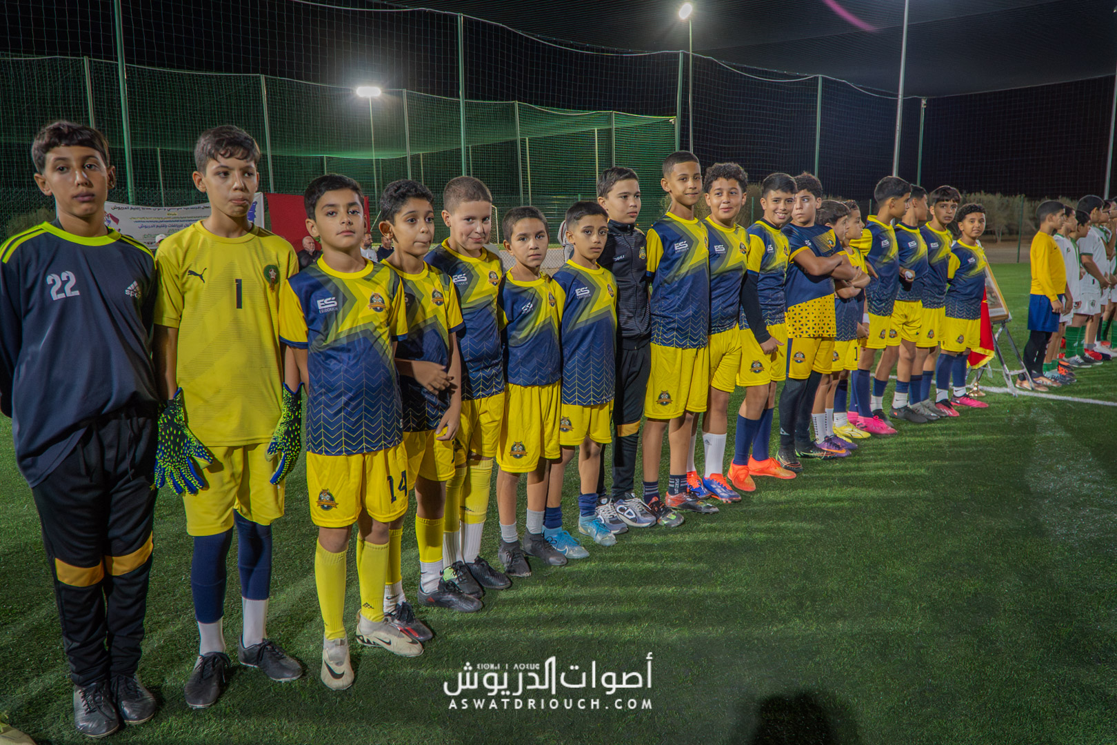 وقبل انطلاق المباريات، أُقيم عزف النشيد الوطني، ما أضفى روحا وطنية وحماسا كبيراً على اللاعبين الصغار.