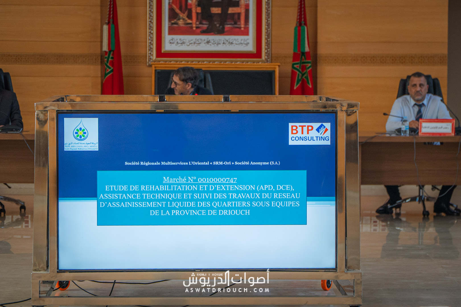 وحضر الاجتماع إلى جانب عامل الإقليم، كل من السيد الكاتب العام للعمالة، ورئيس قسم الشؤون الداخلية بالعمالة، ورجال السلطة المحلية، والمديرة المساعدة للمدير العام للشركة الجهوية متعددة الخدمات الشرق للتوزيع المكلفة بالتطهير السائل، والمدير الإقليمي للشركة بالدريوش، وممثلو المديرية الإقليمية لوزارة التجهيز والماء، ورؤساء وممثلي الجماعات المعنية، إلى جانب مسؤولي مكتب الدراسات المكلف بإعداد التصاميم التقنية وتقديم التكلفة المالية للمشروع، علاوة على رؤساء الأقسام بالعمالة.