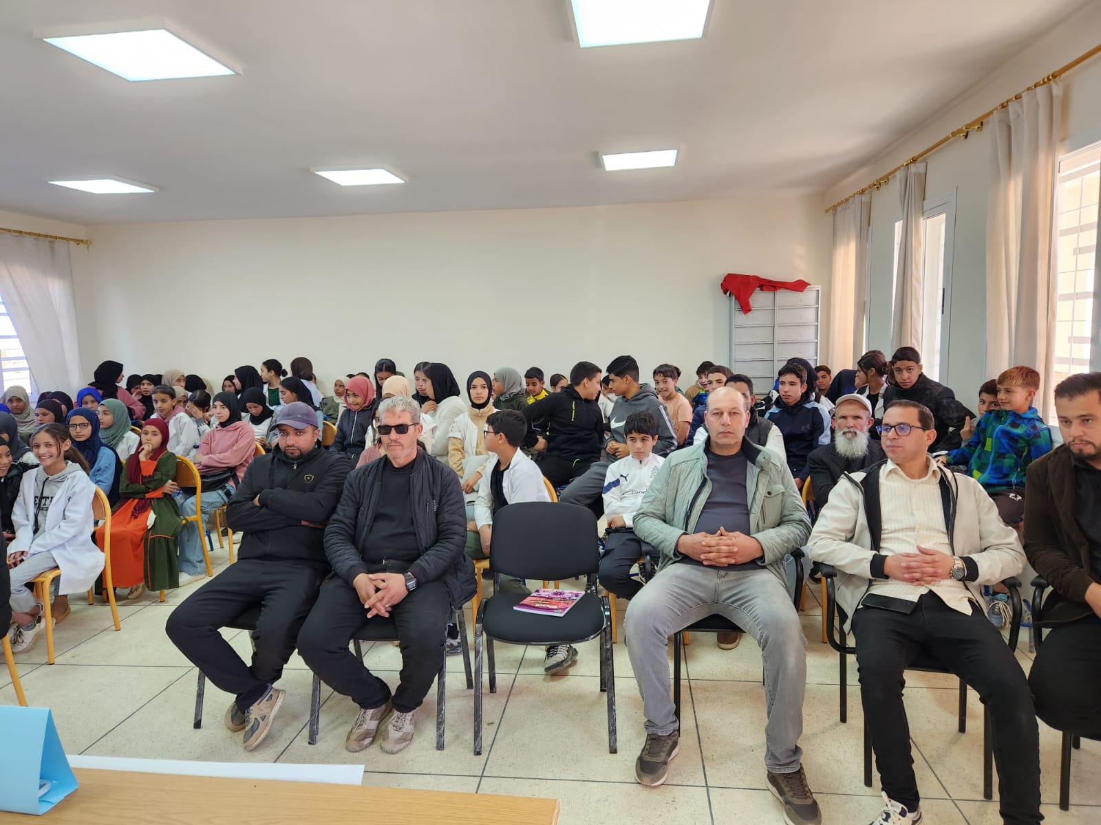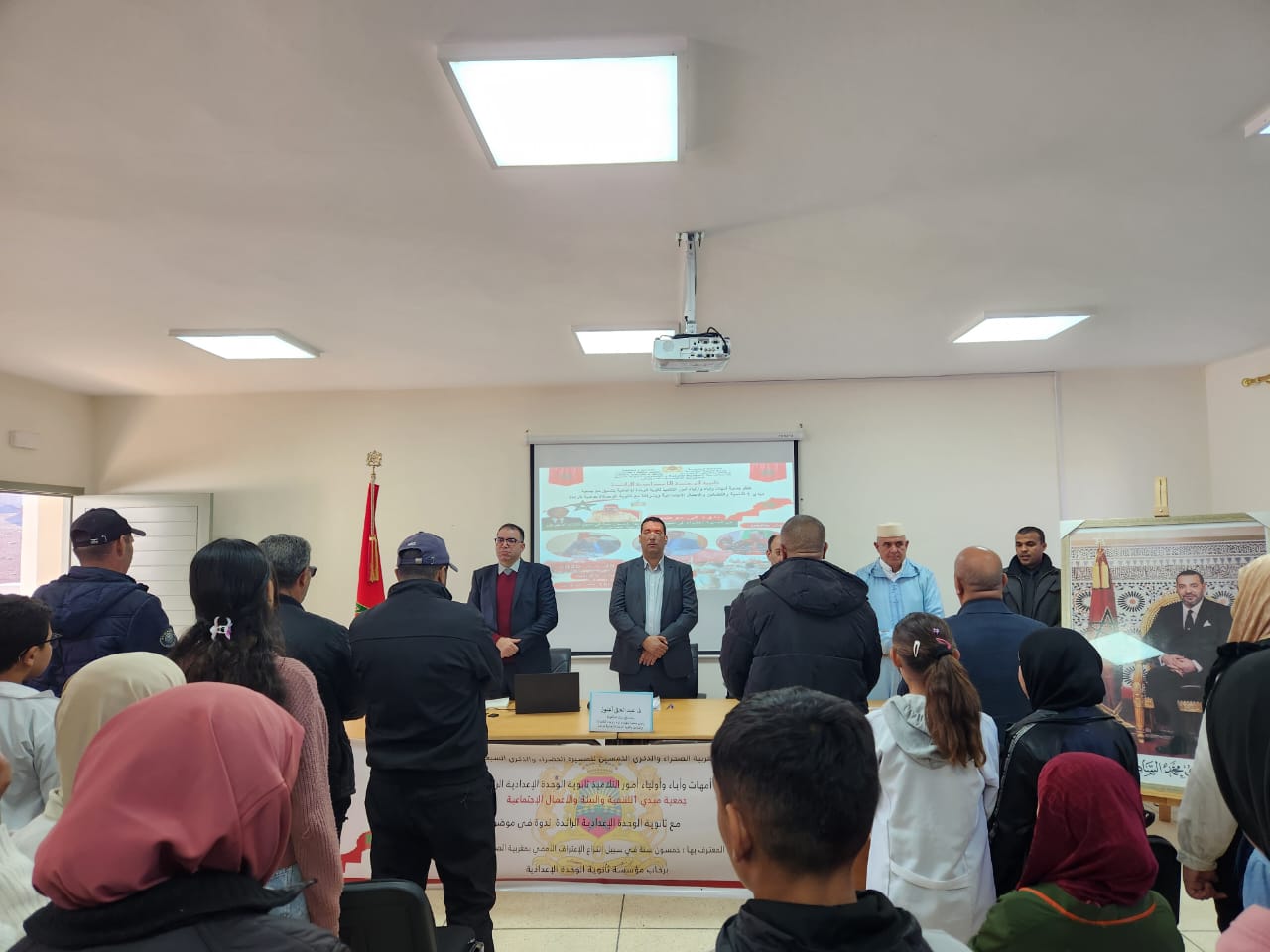 شهدت ثانوية الوحدة الاعدادية الرائدة بجماعة امطالسة عصر يوم الجمعة 28 نونبر 2025 تنظيم ندوة علمية تحت عنوان “من المسيرة الخضراء الى الاعتراف الاممي بخمسين سنة من الجهود في سبيل السيادة المغربية على الصحراء”، وذلك بمناسبة صدور القرار الاممي رقم 2797 عن مجلس الامن الدولي بتاريخ 31 اكتوبر 2025، الذي اكد بشكل صريح سيادة المغرب على الصحراء، اضافة الى تخليد الذكرى السبعين لاستقلال المملكة والذكرى الخمسين للمسيرة الخضراء. وياتي هذا النشاط في اطار حرص المؤسسة على ترسيخ قيم المواطنة والانتماء الوطني لدى التلميذات والتلاميذ.