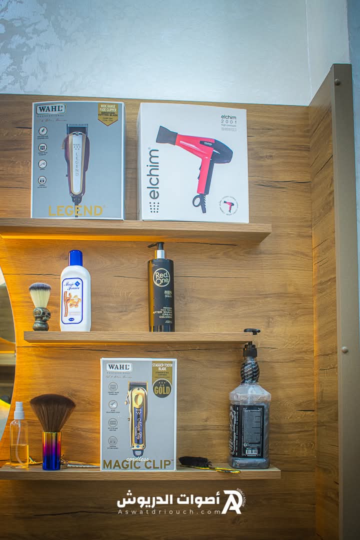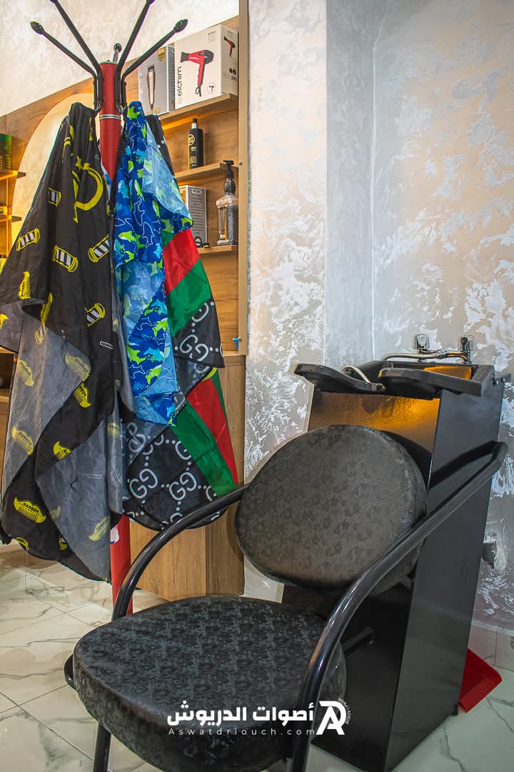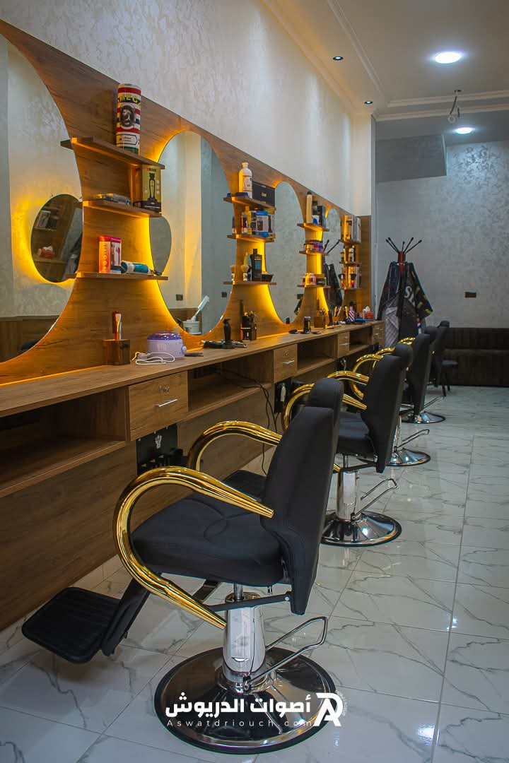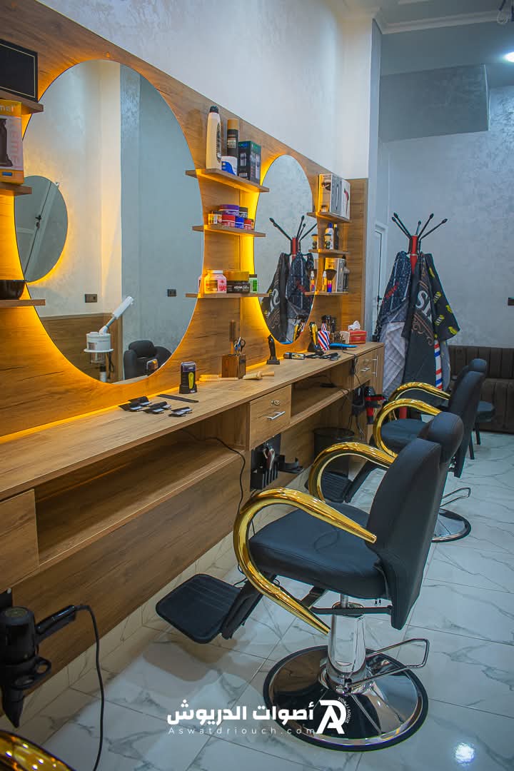 يتميز الصالون بديكور عصري يضفي جوا هادئا ومريحا، ما يجعل الزبائن يشعرون بالراحة والثقة اثناء جلسات الحلاقة.