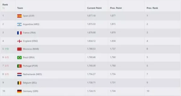 ووفق هذا التحديث، تجاوز المغرب منتخبات عريقة مثل البرازيل وألمانيا، ليصبح أحد أقوى المنتخبات على المستوى العالمي. ويُعد هذا التغيير في التصنيف بمثابة اعتراف رسمي من الفيفا بالمنتخب المغربي بطلاً لإفريقيا.