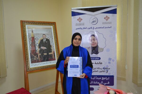 ناقشت ابنة مدينة الدريوش، الطالبة الباحثة عائشة حميت، مساء يوم الجمعة 11 أبريل 2026، رسالتها لنيل دبلوم الماستر المتخصص في قانون العقار والتعمير، وذلك بالكلية متعددة التخصصات بالناظور، في أجواء علمية اتسمت بالجدية والنقاش الأكاديمي الرصين.