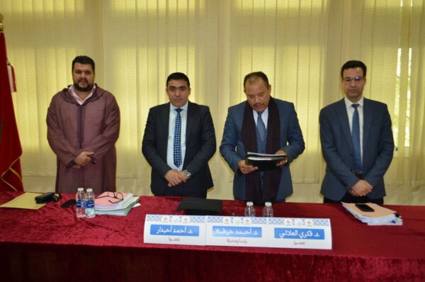 وتألفت لجنة المناقشة من الدكتور أحمد خرطة بصفته مشرفًا ورئيسًا، إلى جانب الدكتور أحمد أحيدار والدكتور فكري العلالي كعضوين.