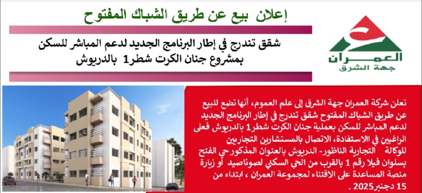 العمران تفتح باب البيع بالدريوش… شقق جاهزة بدعم مباشر ابتداء من 15 دجنبر!
