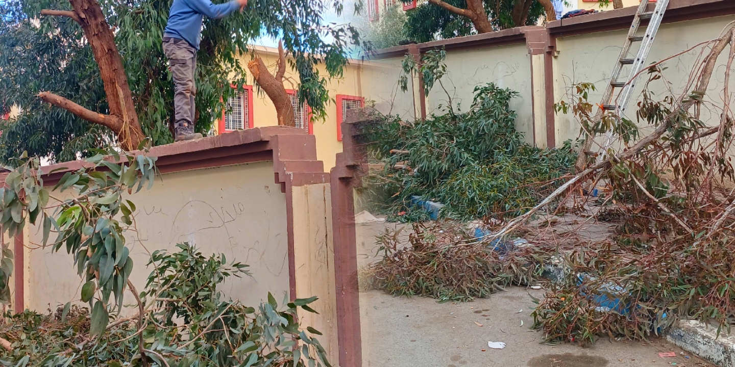 الدريوش.. استمرار عمليات إزالة وتلقيم الأشجار المتضررة لتأمين محيط المؤسسات التعليمية