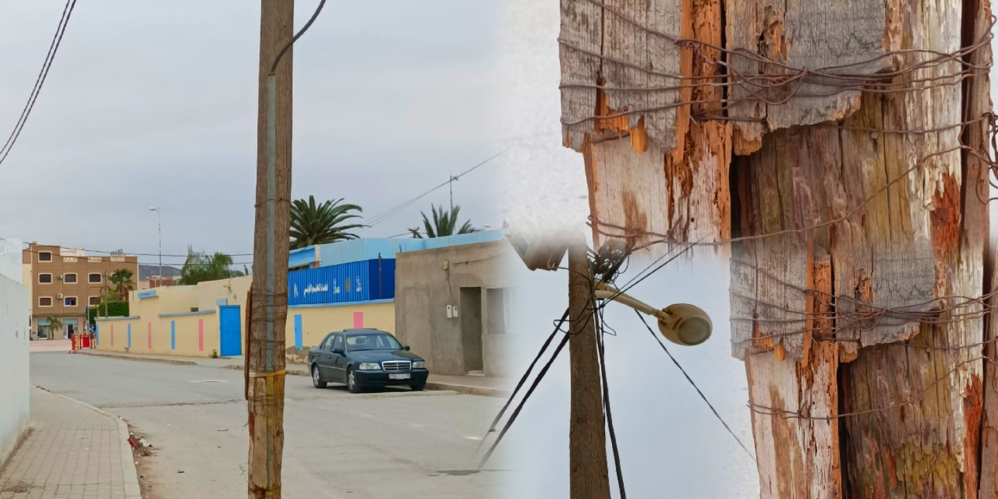 الدريوش.. عمود خشبي وسط الطريق بحي تيدنسيا يهدد سلامة التلاميذ والمارة