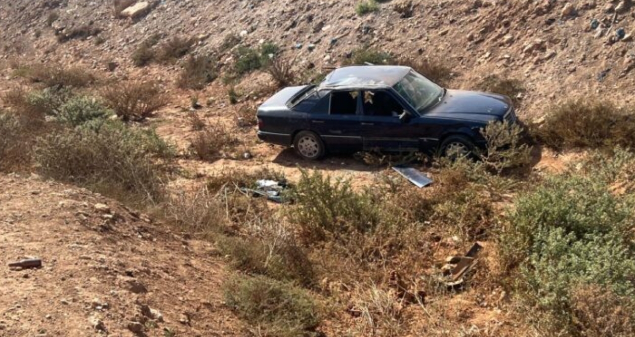انحراف سيارة مرسيدس وسقوطها في واد قرب مطار العروي